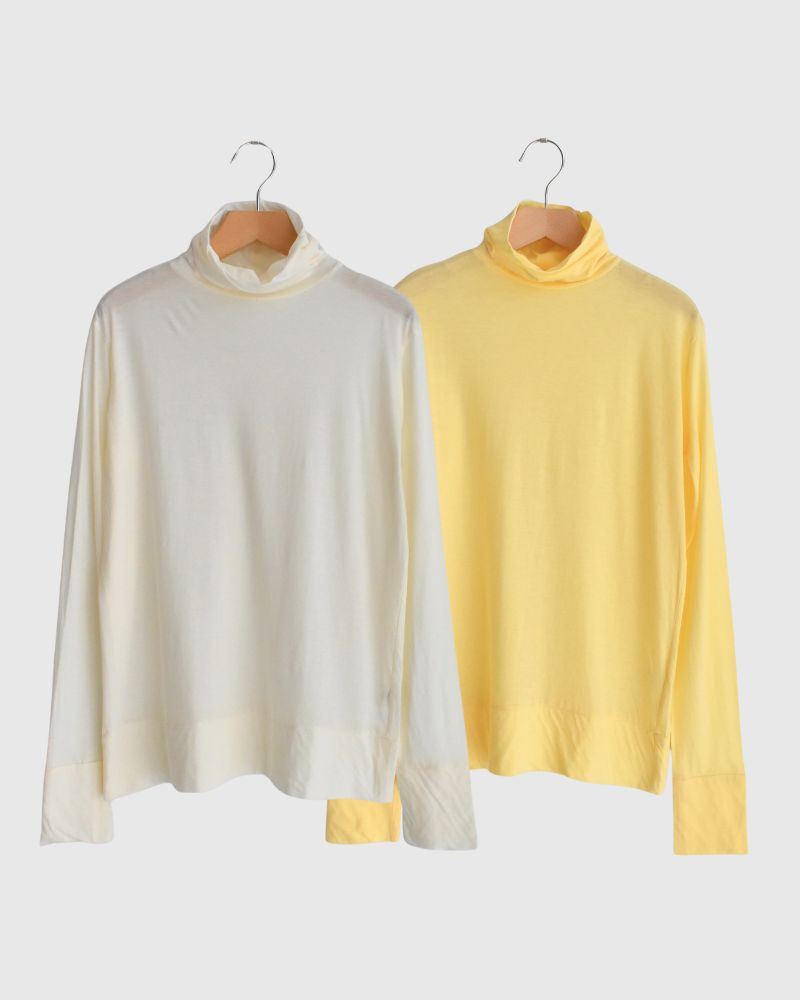ガーゼ#のテレコ素材のインナーシリーズ。伸縮性のあるテレコ素材は、ソフトなフィット感が心地良い。特別な素材はカシミヤと比べても劣らない柔らかさで肌にノンストレス。また、高い保湿性が特徴の1枚は大人のデイリーワードローブ。 ヤクとは寒冷地方の高原に生息する牛の一種で、寒さに耐えるため長くて厚...