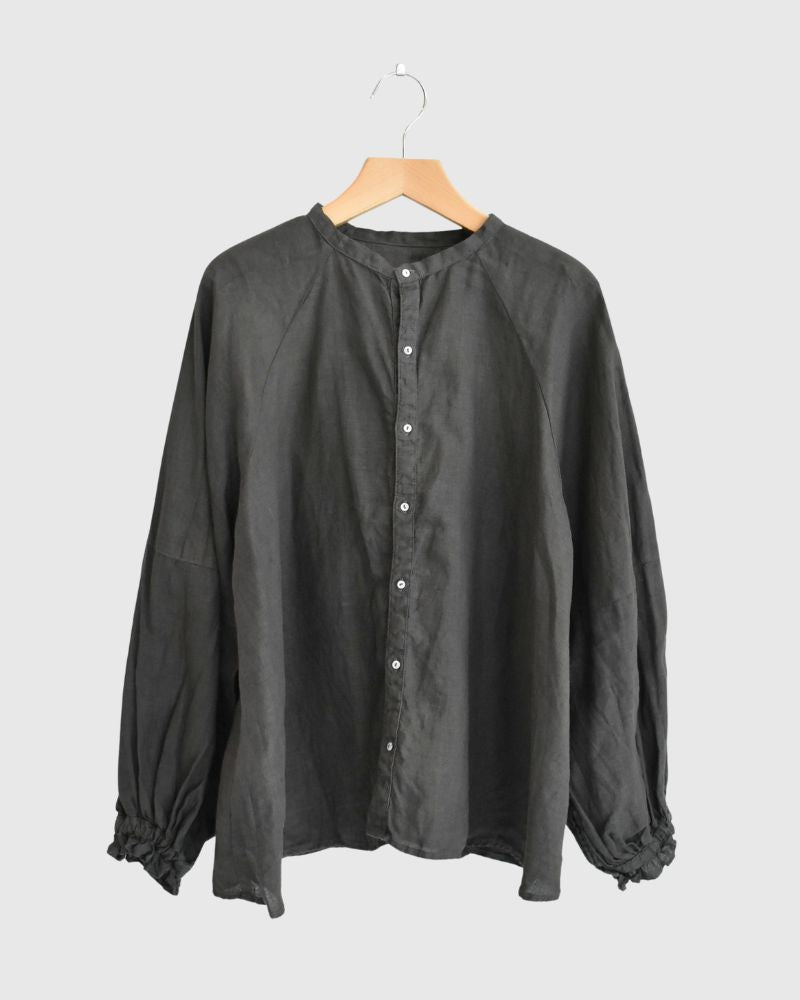 アトリエで絵筆を走らせるフランスの画家が纏うような一枚。 Gauze#の「アトリエ ブラウス」は、製品染めによってアンティークのような深い風合いをまとったリネン100%素材を使用しています。 前後どちらを前にしても着られる2wayデザインで、気分やスタイリングに合わせた着こなしを楽しめます。 ゆったりと...