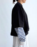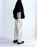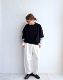 40/20フレンチテリー素材を使用した、軽やかな着心地のスウェットベスト。 コットン100%ならではのやさしい肌触りで、季節の変わり目にも心地よく着用いただけます。 身幅にゆとりを持たせたコクーンシルエットが特徴で、身体のラインを拾いにくく、自然な立体感を演出。 前後差のある着丈がスタイリングに動きを与え、シンプルなカットソーやシャツに重ねるだけで、程よい抜け感のある着こなしが完成します。 スウェット素材でありながらカジュアルになりすぎず、日常に取り入れやすい一枚。 デイリーウェアとして、幅広いスタイリングに活躍します。日本製