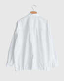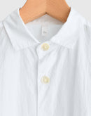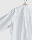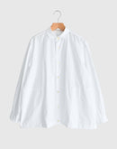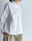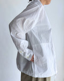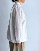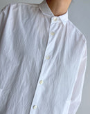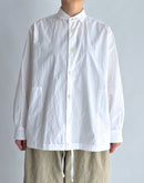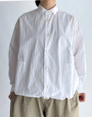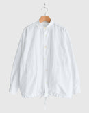 軽やかで上質な表情をもつ、60番手タイプライタークロスを使用したコットンシャツです。 高密度に織り上げられた生地は、ほどよいハリ感とやわらかな風合いをあわせ持ち、さらりとした肌触りで心地よく着用いただけます。 身幅にゆとりを持たせたリラックスシルエットで、身体のラインを拾わず、自然な抜け感のある印象に。 裾にはドローストリングを配し、絞ることで丸みのあるシルエットに変化させることができ、着こなしのアレンジも楽しめます。 一枚で軽やかに、また羽織りとしても活躍する、季節の変わり目にも頼れる一着です。