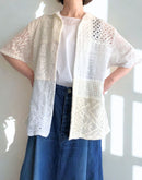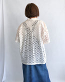 ボーダーやストライプの異なる柄行きのレースや、カットワークレース、刺繍レース、モール素材など、表情豊かな6種類の素材を贅沢に切り替えたパッチワークのシャツ。甘くなりがちなレースアイテムですが、オープンカラーの開襟シャツに落とし込みユニセックスな雰囲気に仕上げました。ホワイトはアイボリーから真っ白まで、様々な色味のホワイトを組み合わせてキレイすぎない、白ならではのヴィンテージっぽい雰囲気の仕上がりです。少しずつ違うレース使いで、それぞれのレースの柄の出方もお楽しみください。