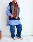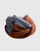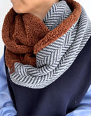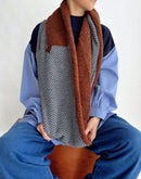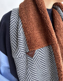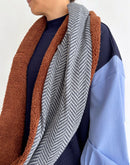 ヘリンボーン柄のニットと、もこもことしたボア素材を組み合わせた、tsukinowaらしい表情豊かなスヌード。 コットンを主体としたニット部分は、やわらかく軽やかな肌触りで、首元に心地よくフィット。 ヘリンボーンの織り柄が、落ち着いた中にもさりげないアクセントを添えてくれます。 内側には、ふんわりとしたボア素材をあしらい、冷たい風から首元をやさしく包み込む暖かさをプラス。 異なる素材や表情をパッチワークのように組み合わせることで、巻くだけでスタイリングに奥行きが生まれます。 ロングタイプなので、二重に巻いたり、ゆったりと垂らしたりとアレンジも自在。 シンプルなコーディネートに合わせるだけで、季節感と個性を添えてくれる一点です。日本製