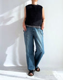 ボイル スリーブレスタックブラウス Navy