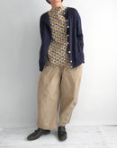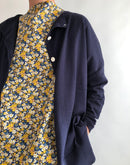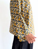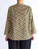 繊細な花柄が一面に広がる、 LIBERTYプリントを使用したボートネックブラウス。 素材には、しなやかで上質なベルビアンコットンを使用。 さらりとした肌触りと、軽やかな着心地が魅力で、 一枚で着ても、重ねても美しく映えます。 首元は、デコルテをきれいに見せてくれる浅めのボートネック。 開きすぎないラインが上品で、 LIBERTYプリントの華やかさを程よく引き立てます。 身幅にゆとりを持たせたリラックスしたシルエットながら、 前後で長さに差をつけた着丈が、 動きのある軽やかな印象に。 パンツにもスカートにも合わせやすく、 コーディネートに自然な彩りを添えてくれます。 一枚で主役に。 カーディガンやジャケットのインナーとしても。 季節を問わず活躍する、頼れるブラウスです。日本製