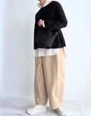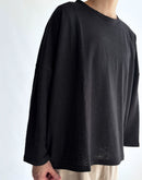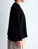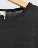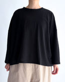 リネン100%の天竺素材を使用した、軽やかな着心地のプルオーバーです。 リネン特有のさらりとしたドライな肌触りに、やや透け感のある軽やかさと、ほのかな光沢感が加わり、ナチュラルでありながら上品な印象に仕上がっています。 身幅をゆったりと取ったワイドシルエットは、身体のラインを拾わず、風を含むような軽やかな着用感。落ち感のある素材が、リラックスした雰囲気の中にもすっきりとしたバランスを生みます。 一枚でさらりと着るのはもちろん、インナーとのレイヤードも楽しめる一着。 素材の表情と心地よさを日常で楽しめる、シンプルで着回しの効くアイテムです。日本製