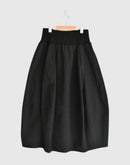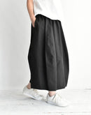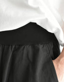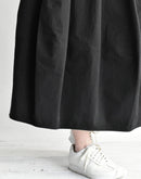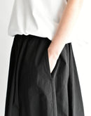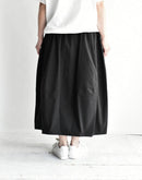 オーガニックコットンツイルを贅沢に使用し、洗うほどに風合いが増していく柔らかな質感が心地よいバレルスカート。樽のような丸みのあるシルエットが身体のラインを優しくカバーし、ウエスト部分に配した伸縮性のあるカットソー(ニット)生地が、お腹周りにソフトにフィット。リラックスした履き心地と、コットンツイルの程よいハリ感が作る上品なフォルムを両立させた、大人のデイリースタイルに寄り添う一着です。日本製