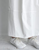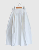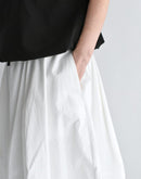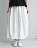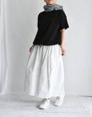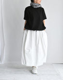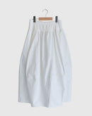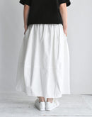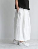 オーガニックコットンツイルを贅沢に使用し、洗うほどに風合いが増していく柔らかな質感が心地よいバレルスカート。樽のような丸みのあるシルエットが身体のラインを優しくカバーし、ウエスト部分に配した伸縮性のあるカットソー(ニット)生地が、お腹周りにソフトにフィット。リラックスした履き心地と、コットンツイルの程よいハリ感が作る上品なフォルムを両立させた、大人のデイリースタイルに寄り添う一着です。日本製