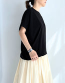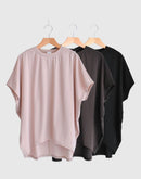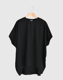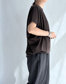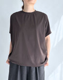 なやかな落ち感と上品な光沢が魅力の、PUPULAロイヤルストレッチジャージーラウンドプルオーバー。 ゆったりとしたドルマンスリーブに、前後差のあるヘムラインが軽やかな動きを演出します。 コットンをベースにしたストレッチジャージー素材は、滑らかで肌に優しく、動きやすさも抜群。 首元はシンプルなラウンドネックで、ネックレスやストールとのコーディネートも映えます。 ヒップラインをさりげなくカバーしてくれる丈感で、パンツにもスカートにも合わせやすい万能トップスです。日本製