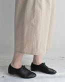 やわらかな風合いのヴィンテージコットンを使用したオーバルパンツ。軽やかで程よいハリ感のあるコットン生地は、肌に心地よくなじみ、日常に取り入れやすい一本です。丸みを帯びたオーバルシルエットが特徴で、身体のラインを拾いすぎず、自然に整ったバランスを生み出します。シンプルでありながらも、さりげない存在感のあるフォルムです。ウエストはゴム仕様でリラックスした穿き心地。着脱もしやすく、ストレスフリーに着用いただけます。両サイドにはポケット付きで実用性も兼ね備えています。ブラウスやワンピースとのレイヤードにも相性がよく、シーズンを問わず活躍する一着です。日本製