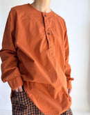 60s COTTON POPLIN OVERDYE HENRY NECK SHIRT Brick