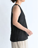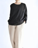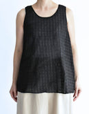 熟練の職人による手織りの温もりと、シルク55%・コットン45%の贅沢な混紡生地が描く上品な光沢が美しいUネックタンクトップ。肌の上を滑るような滑らかさと、手織りならではの軽やかな着心地を両立したシリーズです。控えめながらも奥行きを感じさせるチェックの織り模様が、アンダーウェアとしてはもちろん、トップスの首元や裾から覗かせるレイヤードスタイルに洗練されたニュアンスを添えてくれる、素材の良さを肌で感じる一枚です。インド製