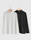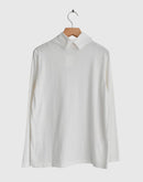 カシミアをブレンドした天竺素材が、しっとりとした肌ざわりと上品なぬくもりをもたらすタートルネックプルオーバー。 コットンの軽やかさにカシミアのやわらかさを合わせ、なめらかな風合いと自然な落ち感を生み出しています。 首もとはややゆとりを持たせたタートル仕様で、折り返しても、くしゅっとさせても美しいバランス。 一枚での着用はもちろん、レイヤードスタイルにも取り入れやすく、秋から春先まで長く活躍します。 上質な素材感とシンプルなデザインが調和した、日常に寄り添うベーシックな一着。日本製