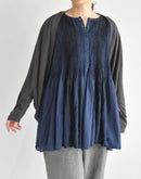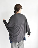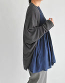 スラブ感のあるコットン100%のカットソー素材を使用。 とっさの日除けよけや冷房よけに活躍する厚手すぎず、程よく目の詰まった生地がポイント。 短丈袖で長方形型に横に広く巾をとった形は、着用時に腕や腰回りをカバーしてくれるシルエットに。 天地逆に袖を通しても問題なく着用出来るのも着用の手軽さのポイント。 半分に綺麗に折って肩に掛けたり、さらに細長くして首に巻いてストールとしても使えるマルチボレロ。