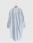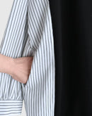 ニットベストを重ね着したようなデザインが目を引く、 Kelen のシャツワンピース 「APOLU」。 ストライプ柄のシャツワンピースに、 Vネックのニットベストをレイヤードしたような一体型デザインで、 コーディネートに悩まず、1枚でスタイルが完成します。 ニット部分は脇まで配さず、 サイドをすっきりと見せることで、重ね着風でありながら軽やかな印象に。 シャツ部分には、程よいハリ感のあるストレッチ混素材を使用し、 きちんと感と着心地の良さを両立。 ニット部分は、涼しげなコットン素材で、季節の変わり目にも快適です。 そのままワンピースとして着るのはもちろん、 パンツやデニムを合わせたレイヤードスタイルもおすすめ。 トレンド感のある重ね着スタイルを、 気負わず日常に取り入れられる一枚です。 普段使いからちょっとしたお出かけまで、 幅広いシーンで活躍する万能なシャツワンピース。
