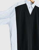 ニットベスト重ね着風ストライプシャツワンピース 'APOLU' OffWhite