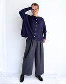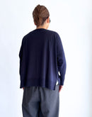 コットン・シルク・カシミア混のニット素材で肌触りの良い滑らかな手触りです。 Veritecoeurのitemの中でも、多くの方にご愛用頂いている2WAYカーディガンです。身幅がワイドな作りで、リラックスした着心地です。2WAYでの着用が可能で、前後どちらを前にしても着て頂けます。様々なitemとも相性が良く、着回しの効くカーディガンです。