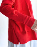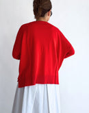 コットン・シルク・カシミア混のニット素材で肌触りの良い滑らかな手触りです。 Veritecoeurのitemの中でも、多くの方にご愛用頂いている2WAYカーディガンです。身幅がワイドな作りで、リラックスした着心地です。2WAYでの着用が可能で、前後どちらを前にしても着て頂けます。様々なitemとも相性が良く、着回しの効くカーディガンです。