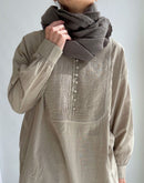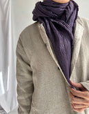 ウール素材では珍しい後染め加工を施し、柔らかい肌触りが特徴。色味や加工感から雰囲気を感じられる一枚に仕上がっています。インド製