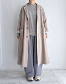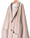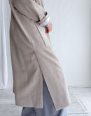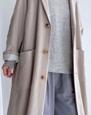 ウール100%の生地でコートをお作りいたしました。軽く、柔らかく、暖かな素材感が特長です。欲しい型・欲しい生地感・欲しいサイズ感でデザインをいたしました。裾にはサイドスリットが入っております。また大きめなPKTもポイントです。ツヤ感と、とろみのある裏地がついており、触り心地の良さもございます。フォーマルにも、カジュアルにも合わせやすい1枚です。