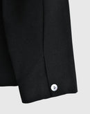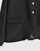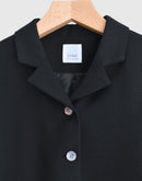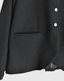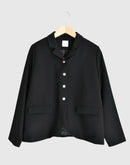コンパクトな丈感と端正なシルエットが印象的な、箱ポケット付きテーラードジャケット。 無駄を削ぎ落としたデザインの中に、静かな存在感を感じさせる一着です。 素材にはポリエステル100%を使用。 ほどよいハリと落ち感があり、シルエットを美しく保ちながら、きちんとした印象を与えてくれます。 前立てには控えめな光沢のボタンを配し、さりげないアクセントに。 フロントの箱ポケットが、クラシックで落ち着いた表情を添えています。 やや短めの着丈は、ワンピースやスカートともバランスが取りやすく、 改まった場面や、きちんと装いたい日の羽織としておすすめです。
