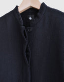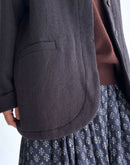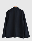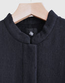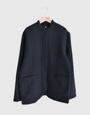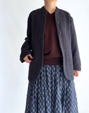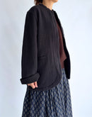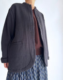 ウールとコットンの素材を使用した、ヘリンボーン織りのスタンドカラージャケット。 今期は表地がコットン、裏面がウールの仕様になっており、表にピリングができにくくなりました。 端正なスタンドカラーとミニマルなデザインがハンサムな印象ですが、裏地のないライトな仕様で、気張りすぎず日常使いしやすいジャケットです。スッキリとしたシルエットですが、ラウンドした裾が柔らかい印象も与えてくれるので、ワンピースなどフェミニンなアイテムとも相性良く合わせていただけます。インド製