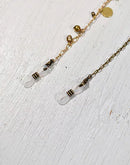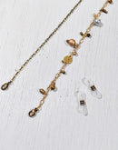 真鍮チェーン、メタルビーズ、ガラスビーズ、真鍮パーツ、メガネストッパー メガネストラップにもネックレスにもなる3WAYのマスクストラップです。 カニカンをマスクの紐にひっかけると、マスクを外した時にマスクチェーンとして、 またカニカンに付属のゴムのメガネストッパーを付けてメガネチェーンとしてもお使いいただけます。 金属部分をつなぐと、ネックレスとしてもご使用いただけます。 マスクをしていても おしゃれを楽しみましょう♪