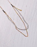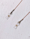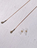 真鍮チェーン、グラスビーズ、真鍮パーツ、メガネストッパー メガネストラップにもネックレスにもなる3WAYのマスクストラップです。 カニカンをマスクの紐にひっかけると、マスクを外した時にマスクチェーンとして、 またカニカンに付属のゴムのメガネストッパーを付けてメガネチェーンとしてもお使いいただけます。 金属部分をつなぐと、ネックレスとしてもご使用いただけます。 マスクをしていても おしゃれを楽しみましょう♪
