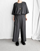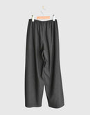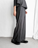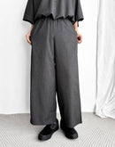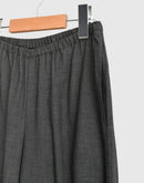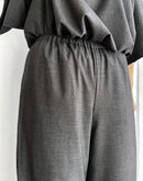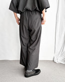従来のテトロン素材よりももたつき感が少なく艶やかに仕上げた生地を使用したパンツ。程よくハリのある高級感ある佇まいです。ウエストはゴム仕様でストレスフリーな穿き心地。落ち間のある美しいシルエットが魅力です。同じ素材を使用したプルオーバーとのセットアップも素敵です。 *コットン素材の裏地付きです。 日本製
