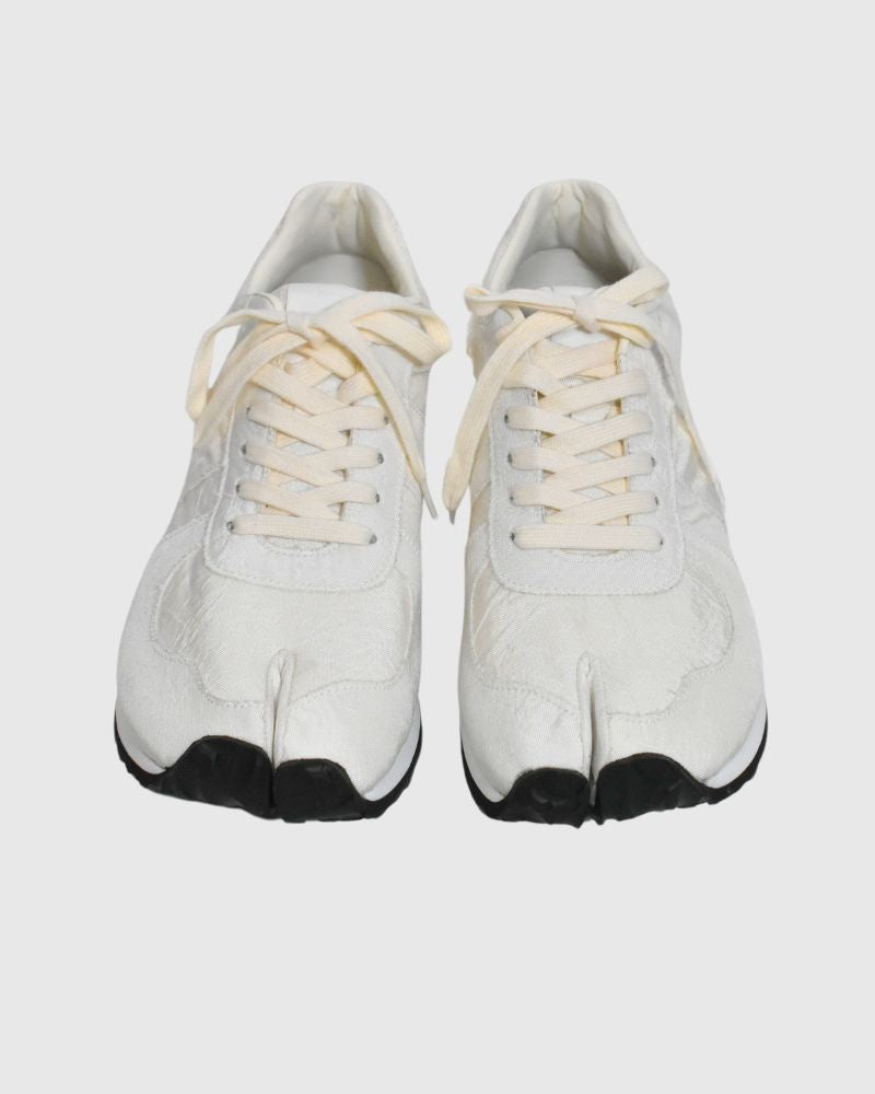 ミリタリーシューズからインスパイアを受けてデザインされた足袋スニーカー。