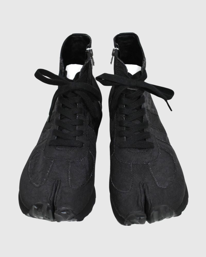 ミリタリーシューズをベースデザインにした足袋スニーカー。