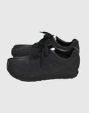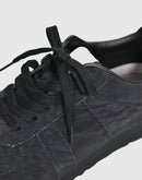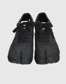 ミリタリーシューズからインスパイアを受けてデザインされた足袋スニーカー。 素材はエアバッグに使用されていたナイロン。 サスティナブルな取り組みとして廃棄される自動車のエアバッグをアップサイクルし 靴の材料として再利用しています。 ワイズはE-2Eになり、つま先部分に広がりのあるオリジナルラストになります。 アッパー・ソール共に足袋の様に分かれていることで足先への負担も軽減され、 快適な履き心地でご着用いただけます。 足の実寸サイズより約0.5-1㎝ほど大き目を履かれる事をお勧めいたします。 通常履かれているスニーカーのつま先に1㎝ほどの余裕がある場合、 普段通りのスニーカーサイズをお選び頂くことをお勧めいたします。 靴箱はグラフィックユニット「COCHAE」によるオリジナルデザインです。日本製