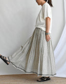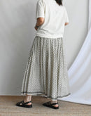 こちらは、ウエストゴムで、さらに紐で調節が可能なイージー仕様のギャザースカート。