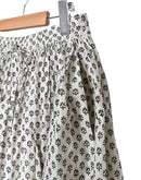 薄手の80番手コットンボイル生地に、インドのグジャラート州AJRAK村で昔から継承されている伝統技法の一つで、手彫りされた木版を使い手押しで生地にプリントを施す"ブロックプリント"で小花をモチーフにした柄を表現しました。