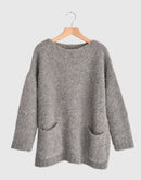 3GG BOUCLE CREW NECK PULLOVER WITH POCKET GrayBeige