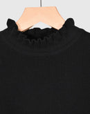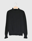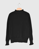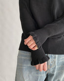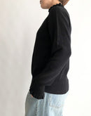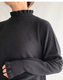 コットン100%素材でトロリと滑らかな少し厚みのある質感が特徴です。 チクチク、ごわごわしません。 ヘビロテで着たくなるような、柔らかな着心地です。 首元と袖口のフリルが程よい甘さの絶妙なバランスのハイネックデザイン。 袖口にもフリルをあしらい、重ね着をした時にアクセントになりますよ。 ゆったりめのシルエットで伸縮性に富んでいるので、お家リラックス時にもおすすめです。 毛玉ができにくく、自宅でお洗濯できるので、お手入れしやすい事も嬉しいポイント。
