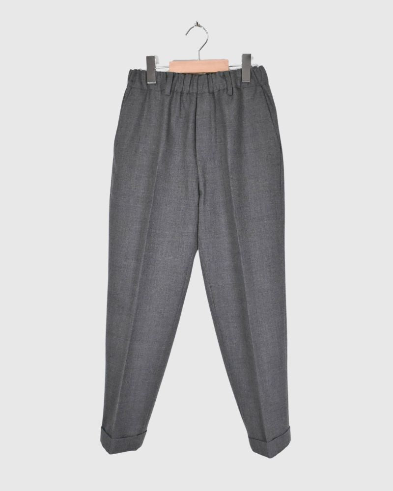 Code : ROBIN-WO_1 Brand : nicholson&nicholson 表地:ウール100%別布:綿100%裏地:ポリエステル100%38:ウエストゴム33~45cm 総丈90cm 股下64cm40:ウエストゴム35~47cm 総丈92cm 股下65cm 上品な印象を与える裾ダブル仕上げのセンタープレスパンツ。裾にかけてテーパードを効かせた美しいシルエットがポイント。ウエストはゴム仕様にプラス紐での調節が可能。スッキリと...