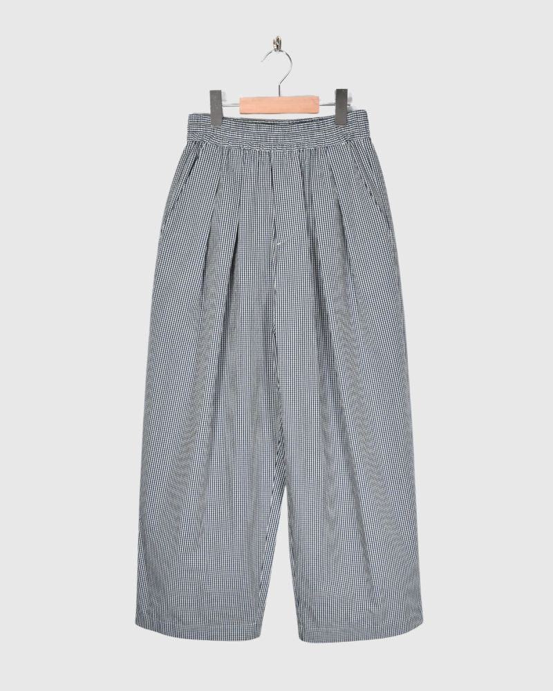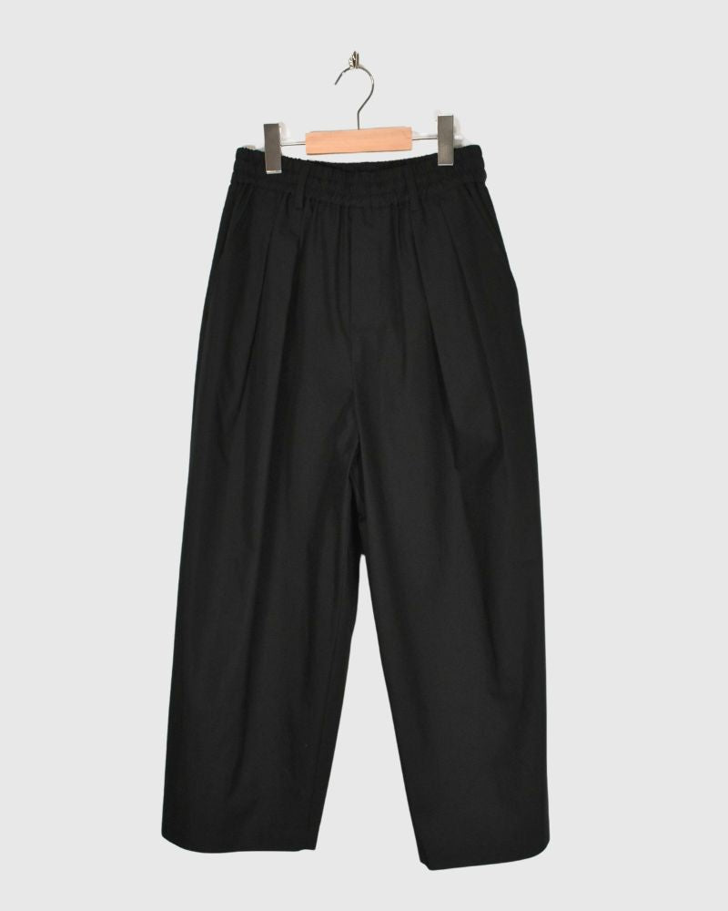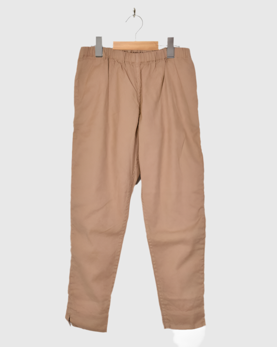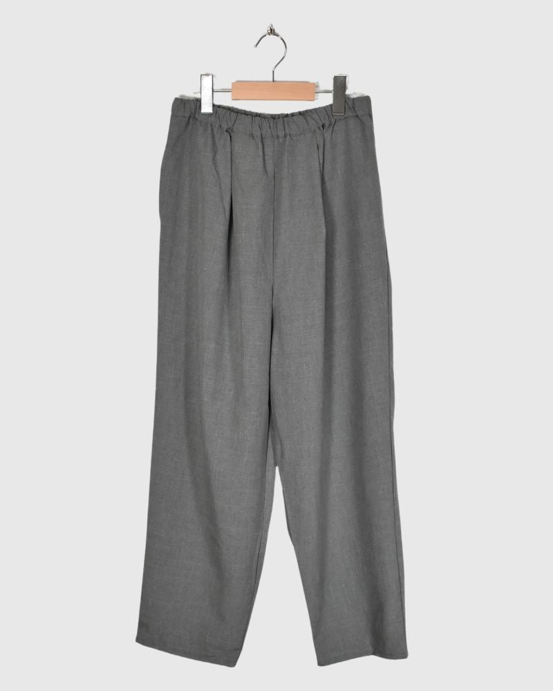 Code : VC-2771U_bk Brand : Veritecoeur   コットン90% リネン10%2:ウエストゴム37~49cm 股上36cm 股下60cm ヒップぐるり150cm わたり巾44cm 裾幅30cm   たて糸にコットン、よこ糸にコットンリネンの混紡糸を用いた中肉厚の平織り生地を使用。 よこ糸に細番手の糸を採用することで、程よいハリと軽やかさを両立しています。 タフな素材感でありながら、製品染めによって柔らかな風合いに仕上げ...