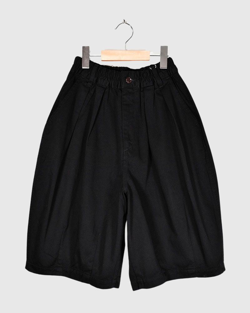 Code : A11909_19 Brand : HARVESTY ギザコットンバックサテン COTTON100%2(M):Wゴム上がり30cm 総丈59cm 股下28cm フロントタックとスソダーツの大胆なボリュームシルエット ”サーカスパンツ"のショートパンツ。 丸みのあるボリュームシルエットと、ゴム仕様のウエスト周りはそのままに、ショート丈にアレンジ。 綿100%で粗野感のあるチノ素材は穿き心地も良く、穿く程に肌に馴染みます。