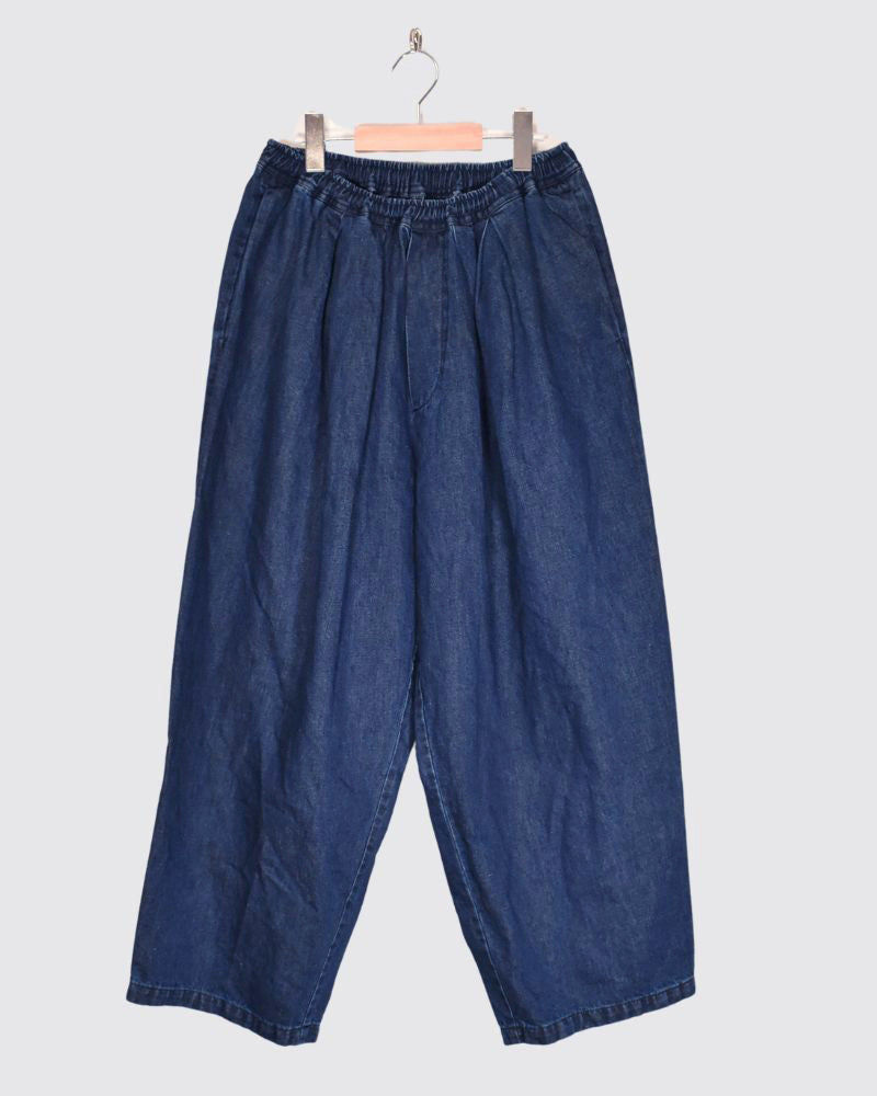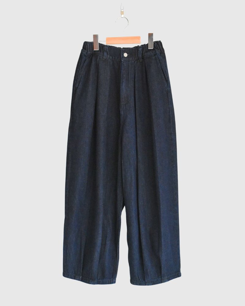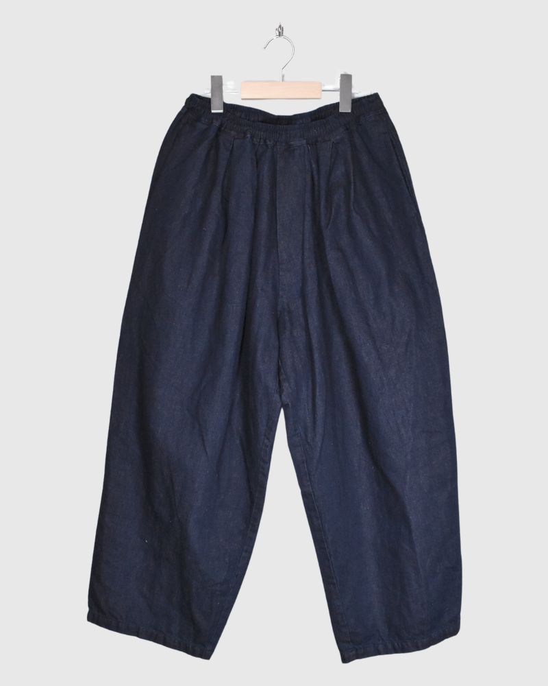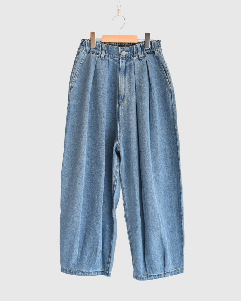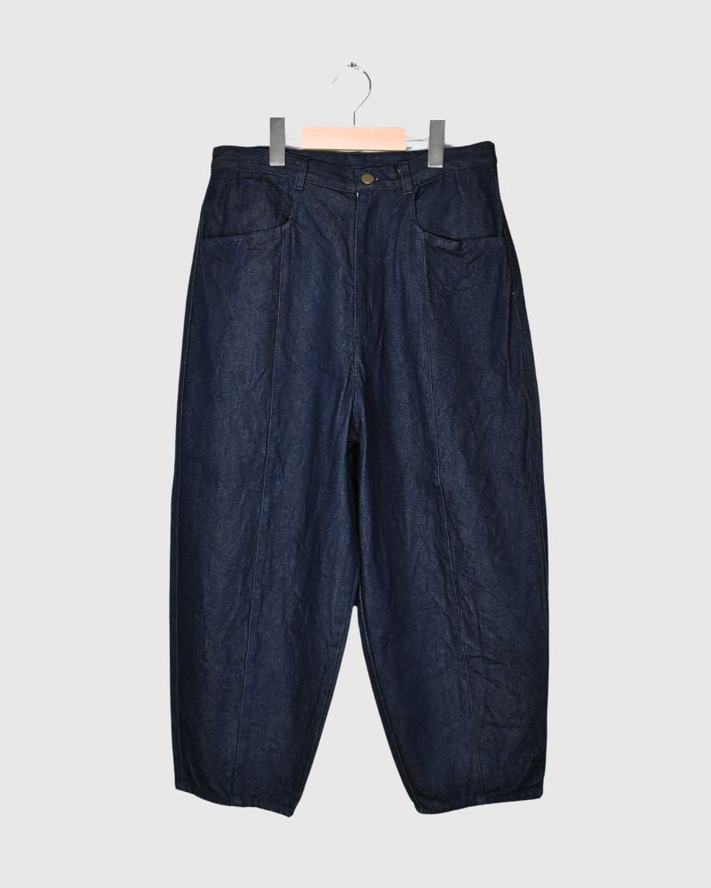 Code:LKL25FPT2114_lid Brand : Kelen   表地: 綿100%別布(袋布): ポリエステル80% 綿20%M:ウエストぐるり66-92cm ヒップぐるり102cm パンツ丈95cm 股上47.8cm 股下87.6cm もも周り87.6cm 裾周り48cm   甘織りのソフトデニムを使用したコクーンシルエットのデニムパンツです。 糸の撚りを弱くすることにより膨らみができた糸を、甘くゆっくりと織り上げた生地です。 ウエスト...