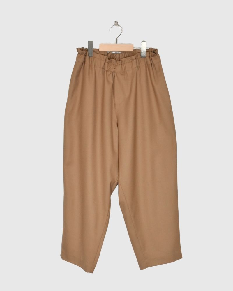 Code : GNMDS2052WF_8400 Brand : maison de soil   ウール90% ナイロン10%1:ウエストゴム37~52cm ヒップ幅56cm 総丈99cm 股下68cm   柔らかくふんわりとした肌触りのウールフランネルのパンツは、秋冬のスタイルにぴったりなアイテムです。 ほど良く上品な印象の生地感は、カジュアルにも綺麗めにもおすすめ。 ウエスト部分全体にはゴムが入っており、さらに内側から紐で調節が可能なイージー仕様...