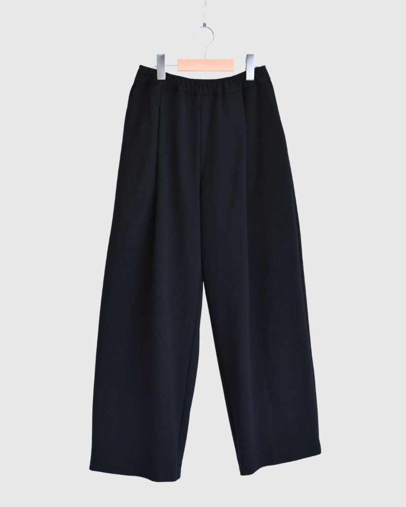 Code : LTD-137_bk Brand : Veritecoeur   レーヨン67% ナイロン30% ポリウレタン3%F:ウエストゴム~44cm 股上34cm 股下70.5cm ヒップぐるり102cm わたり幅31cm 裾幅28.5cm   ハリのある肉厚のポンチ生地を使用。シルケット加工で表面の毛羽を抑えたクリアな見た目のカットソー素材です。伸びやかなストレッチ感が特徴です。カジュアルなストレッチ素材のワイドパンツです。フロントにタックの...