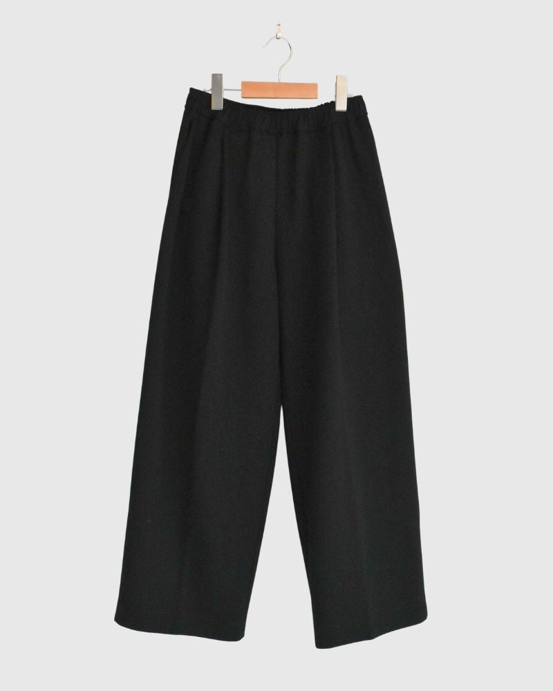 Code : 1355039_3 Brand : denier   ウールツイル縮絨 ウール100%F:ウエストゴム34~51cm 総丈87cm 股下59cm   上質なウールツイル生地に縮絨加工を施し、ふっくらとした温もりと柔らかさを引き出したコクーンパンツ。 起毛感のある滑らかな表面は肌あたりがやさしく、軽やかな履き心地ながらもしっかりとした暖かさを感じられます。 腰まわりにゆとりを持たせたコクーンシルエットが、動きやすさと美しいラインを両立。...