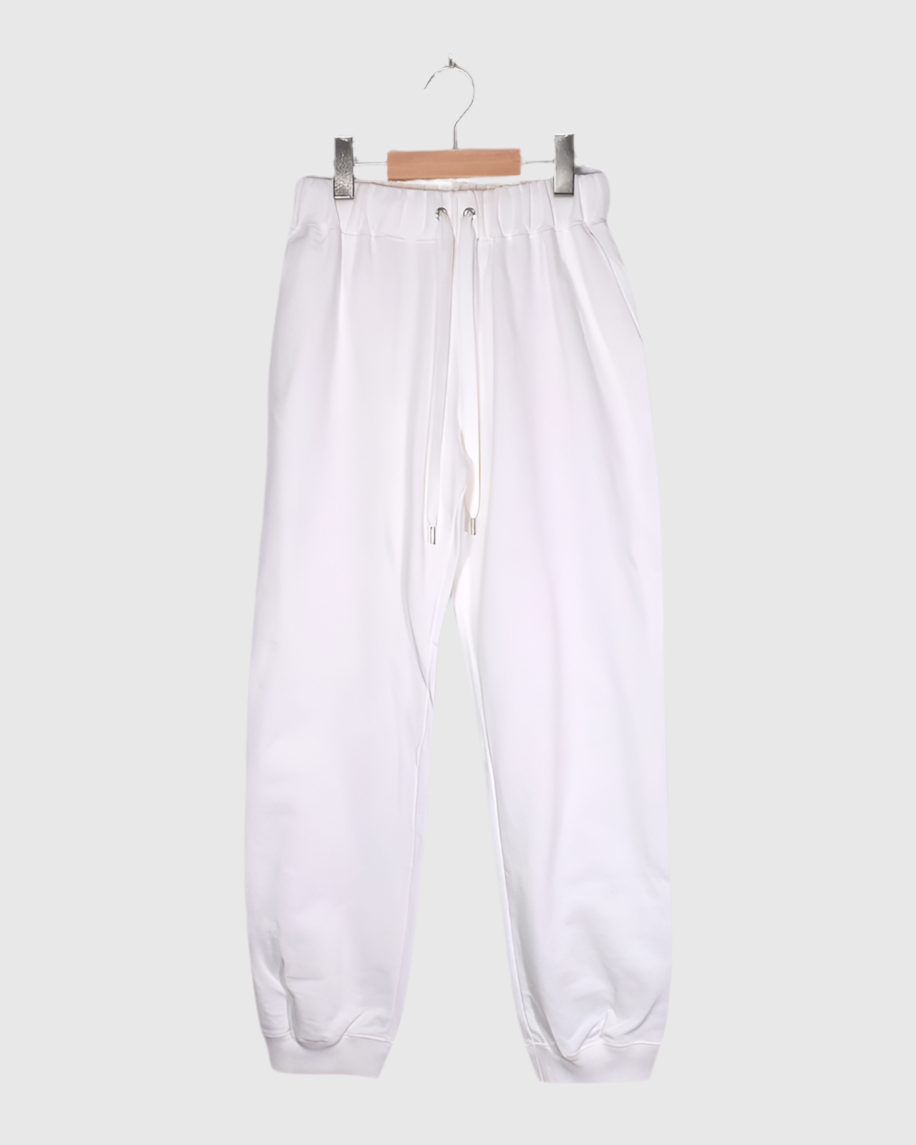 Code : VCC-472U_wh Brand : Veritecoeur COTTON100%1:ウエスト(ゴム&紐)66~78cm 股上30cm 股下71cm ヒップ104cm わたり幅28cm 裾幅14.5cm 総丈93cmイタリアの高級老舗テキスタイルメーカー アルビニ社のコーコランと呼ばれる糸をミニ裏毛タイプに編んだ生地を使用。軽い着心地で吸湿性が高く、オールシーズンお使いいただけます。ハリがあり型崩れしづらいのも特徴。裾にゴムを...