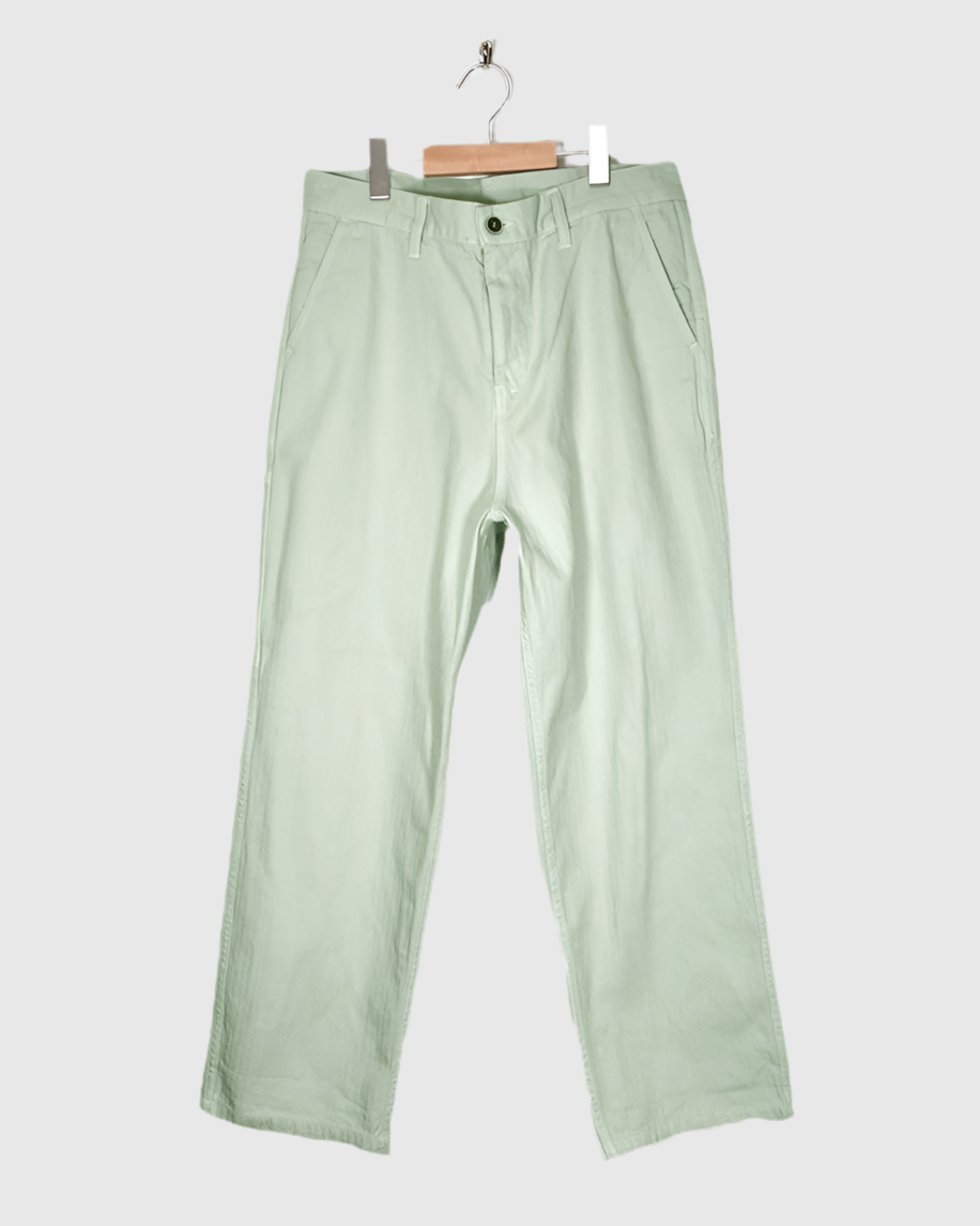 Code : ic900934_a Brand : ichi Antiquite's COTTON 100%F:ウエスト43cm 総丈102cm 股下71cmV字が一方向に向かって直線的に連なっている模様ヘリンボーンをあしらったパンツです。製品染ならではの、風合いのあるムラ感を楽しめる生地と春らしい色が魅力です。