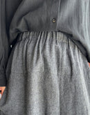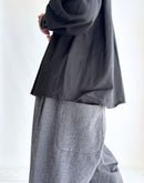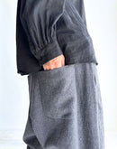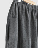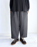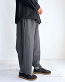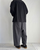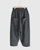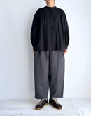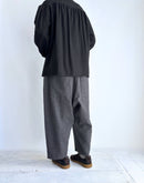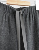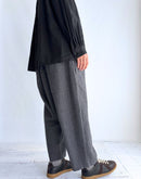 上質なウール素材を使用したリラックス感のあるサルエルパンツ。 ほどよいボリュームと丸みのあるシルエットで、ラフすぎず上品な印象に仕上げています。 ウエストはゴム仕様で、内側のドローコードによりサイズ調整が可能。 バックポケットがアクセントになりつつ、機能性も備えています。 フォーマルなスタイルにも、カジュアルなコーディネートにも合わせやすい一本。 柔らかなウールの質感が心地よく、季節を通して長く愛用できるVeritecoeurらしいパンツです。 日本製