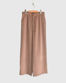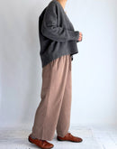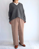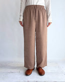 エンボスの立体的なドット柄が特徴的なギャザーパンツです。 近くで見ると浮き上がるようなエンボス加工のドット柄をベースに、ウエストベルトには無地素材を使用してメリハリを効かせました。 細かい起毛とさりげない光沢感が上品で、秋冬のムードを演出してくれる素材です。 ウエストは総ゴム仕様に加え、ドローストリングでサイズの調整も可能。 リラクシーな履き心地ながらも、程よく広がるストレートシルエットで脚をすっきりと見せてくれます。