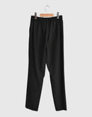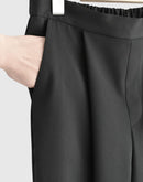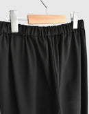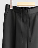 上質なウール素材を使用した、タック入りテーパードパンツです。 ヒップまわりには程よくゆとりを持たせ、裾に向かってすっきりと細くなるシルエットが、落ち着いた印象と美しいラインを演出します。 ウエストはゴム仕様に加え、内側に調整用の紐を備えており、見た目のきちんと感と快適な穿き心地を両立。 両サイドにはポケットを配置し、実用性にも配慮されています。 しなやかで上品な質感の生地は、ジャケットやワンピースと合わせたきれいめな装いにも自然に馴染み、セレモニーや少し特別なシーンにもおすすめの一本です。