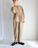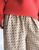新柄のオリジナルプリントです。 全体的にワイドでゆったりとした履き心地と、裾はやや狭めのテーパードに近いシルエットです。更にキレイなスタイルを保ちやすいよう、ウエストにタックを施しました。インド製
