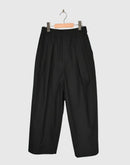 ウエストタックでヒップ周りはゆったり、裾へかけてすっきりとしたテーパードライン。