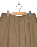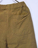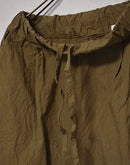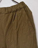 コットン100%の生地を使用したパンツです。生地には、クロスワッシャー加工が施され、洗いざらしの様な自然なシワ感が心地よく魅力的です。ウエスト部分には、タックが入り表情あるシルエットを形成します。ウエストは、ゴムと紐で調節可能です。軽やかな穿き心地で、ワンピースやチュニックのインナーパンツとしてもおすすめです。